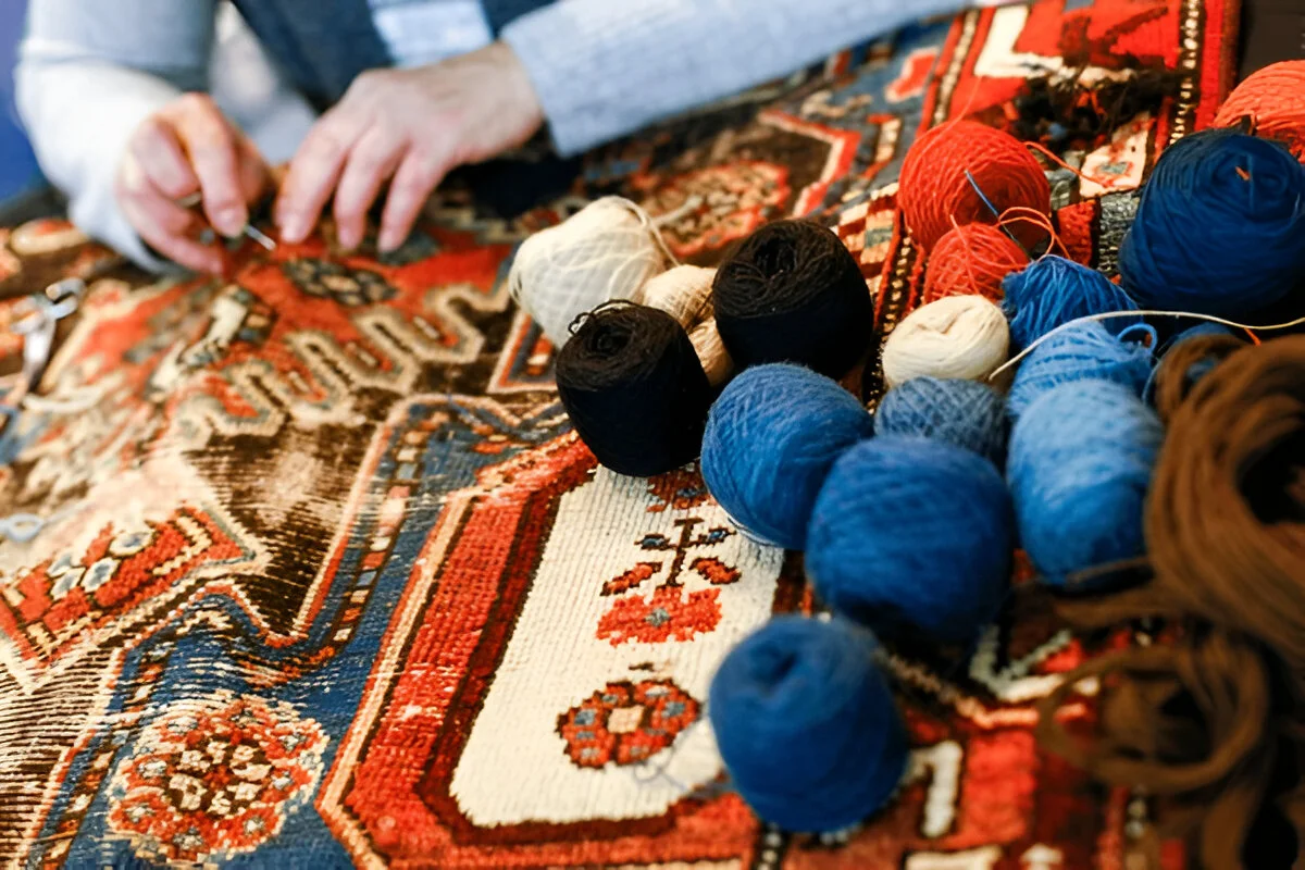 Expert rug repair. Seamless fix on a torn edge. Impressed!